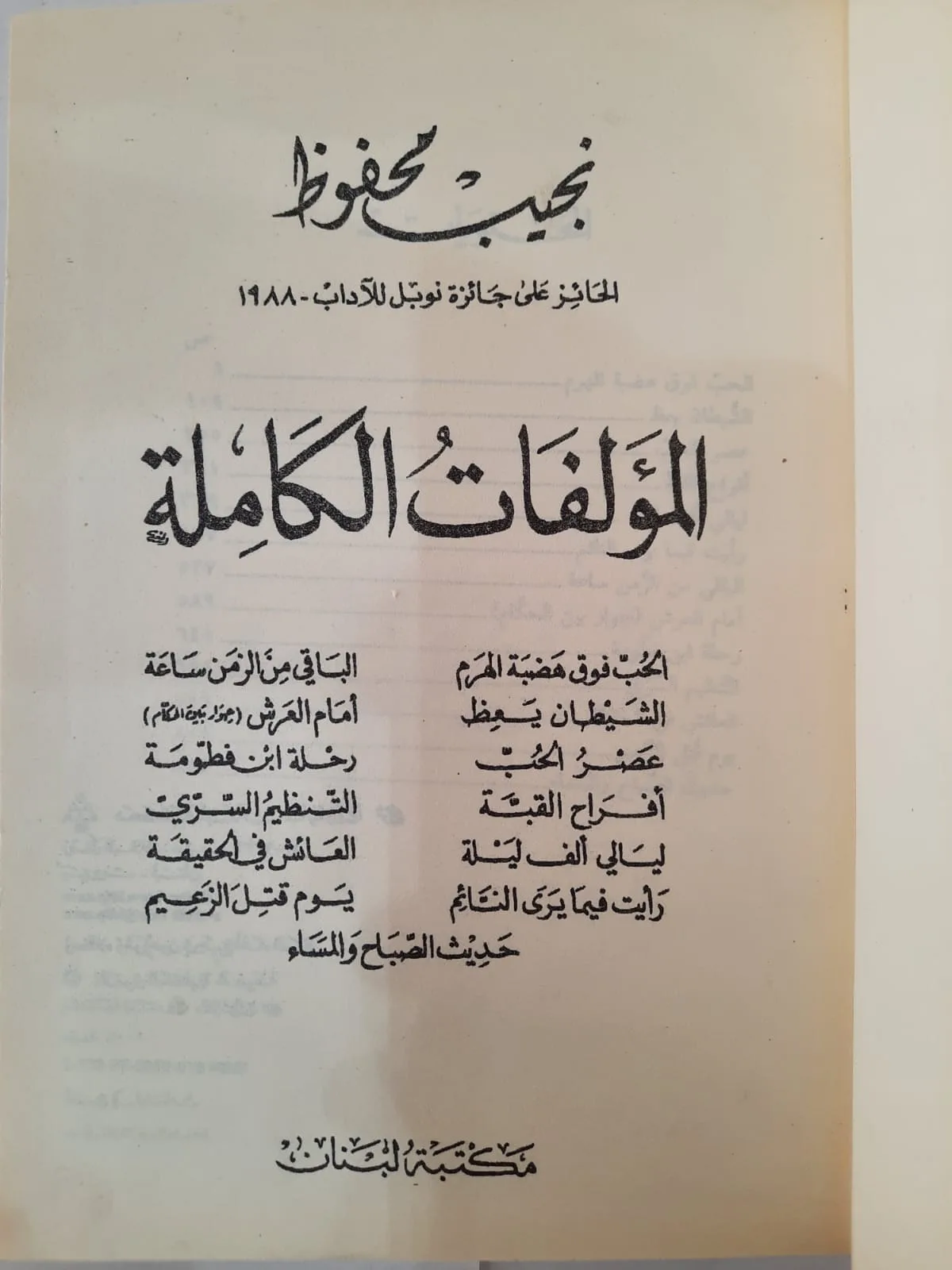المؤلفات الكاملة أربعة مجلدات من أصل خمسة أجزاء للكاتب نجيب محفوظ