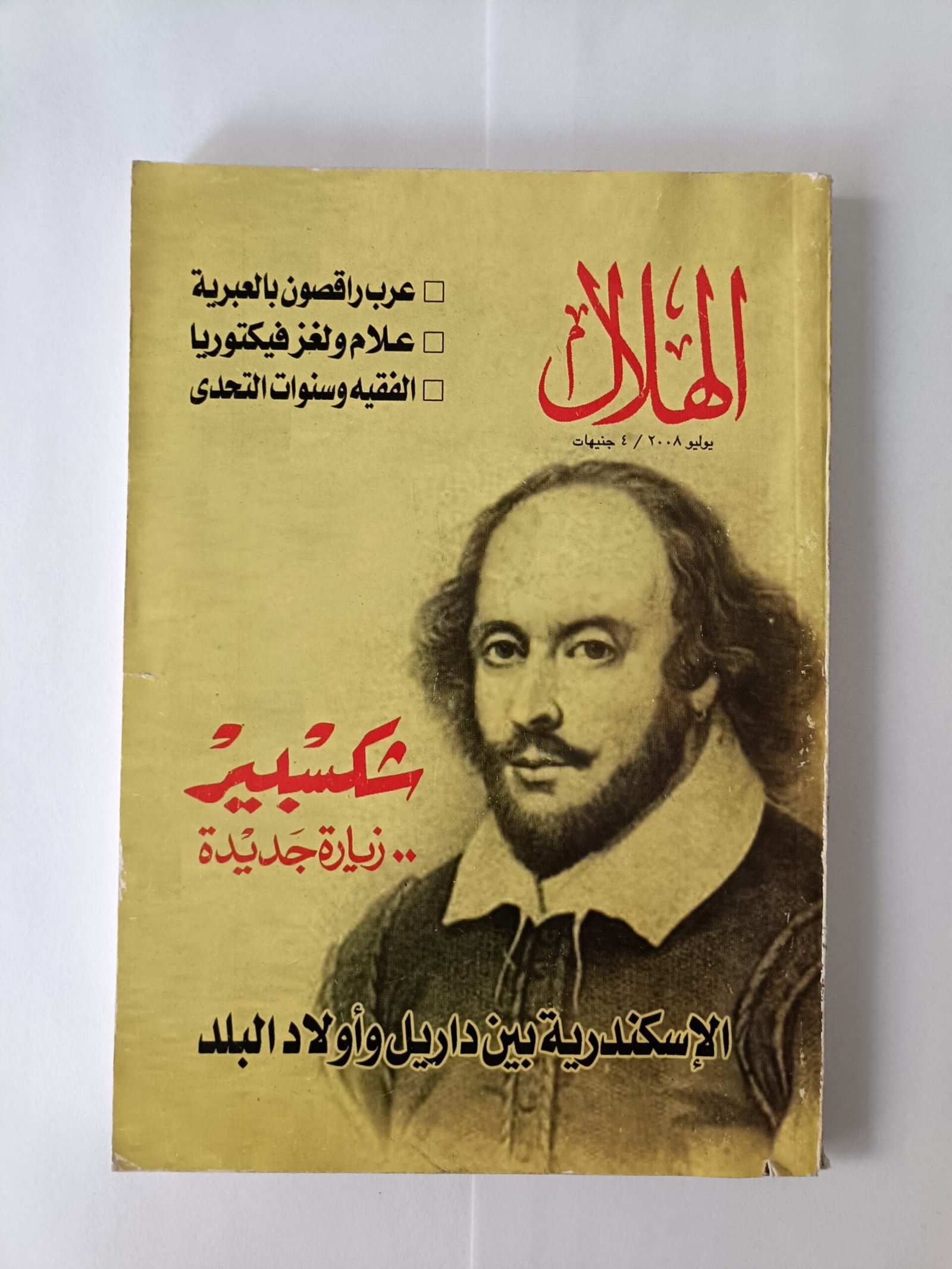 مجلة الهلال عدد يوليو 2008 بعنوان شكسبير زيارة جديدة وعرب راقصون بالعبرية والإسكندرية بين درايل وأولاد البلد